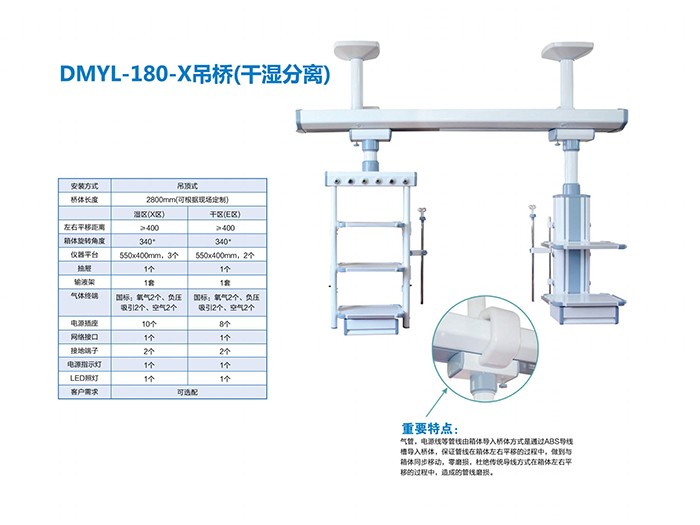 接着,我们为大家推荐山东生产的心血管内科CCU医用吊塔。在监护病房中,通常会使用医用吊桥,因为这种吊桥是一个横梁,两侧分别带有箱体,从而为放置监测仪器提供了更多的空间和位置。吊塔上还可提供气体等,可根据病房的实际需求进行选择,箱体上还配备了电插口,为监测仪器和设备提供电源。